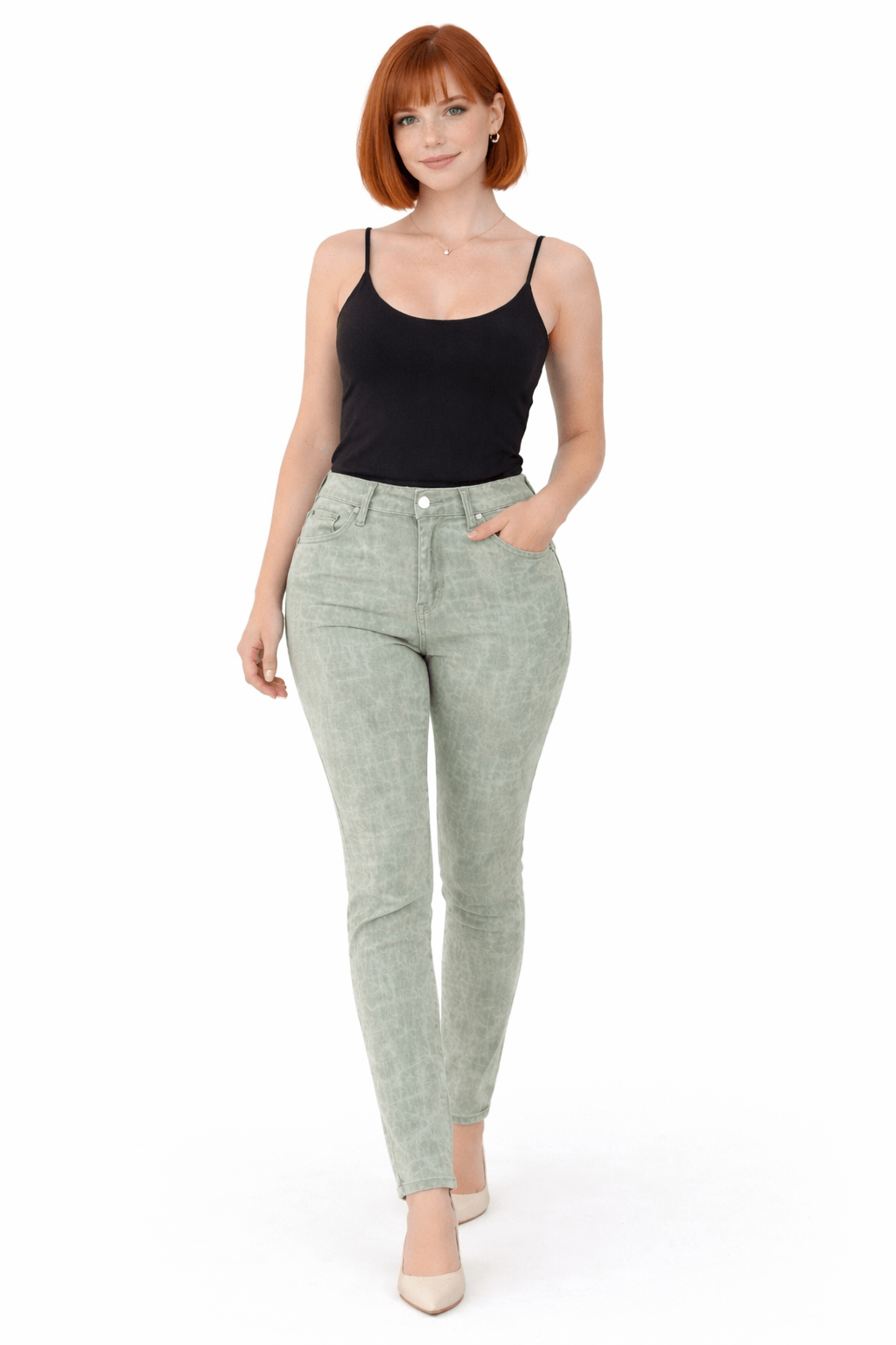 Zöld mintás nadrág.