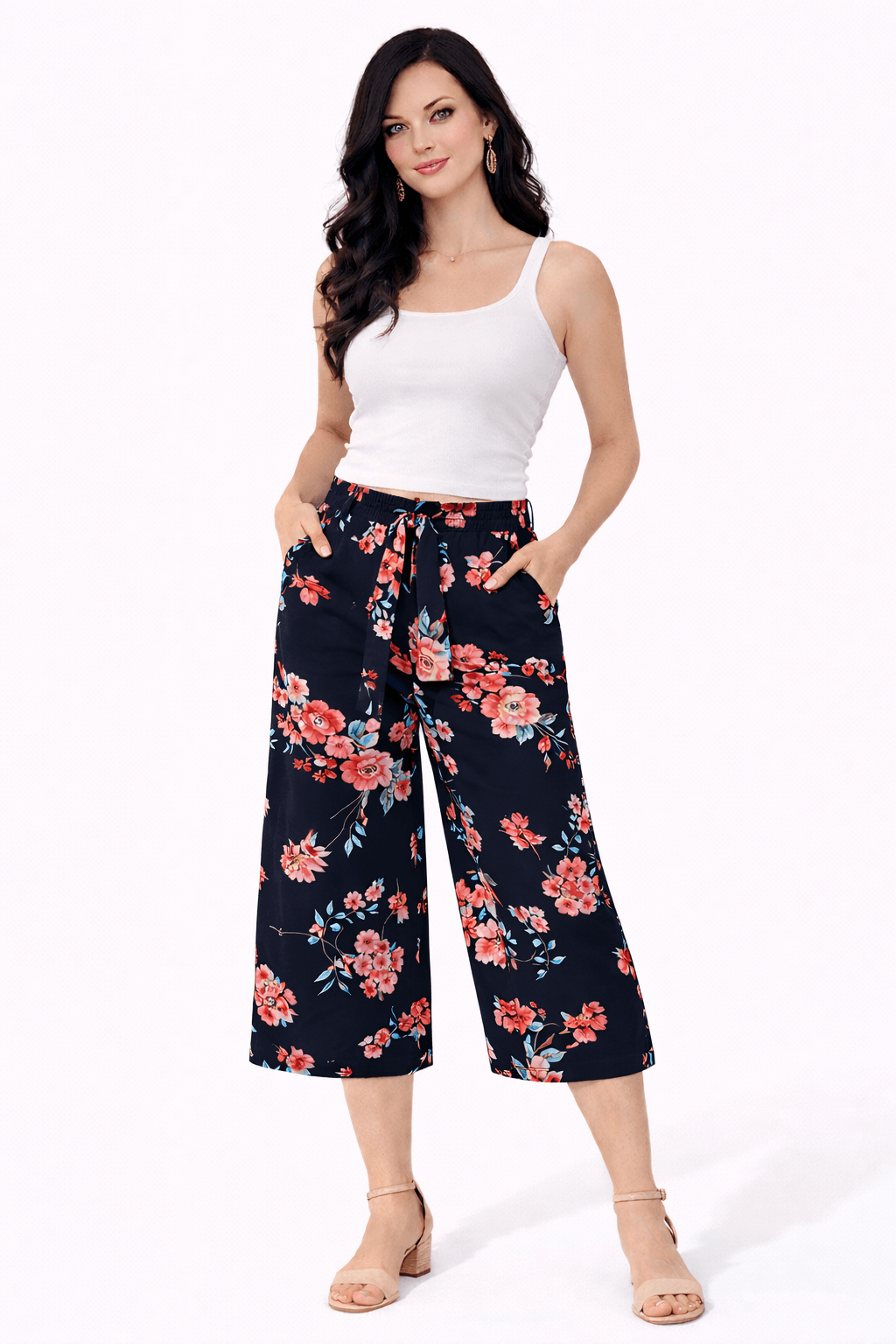 Sötétkék alapon színes virágos nadrág.